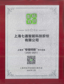 发布时间:2020年09月10日日前,七通智能荣获上海市经济和信息化委员会颁发的上海市“专精特新”中小企业荣誉称号。